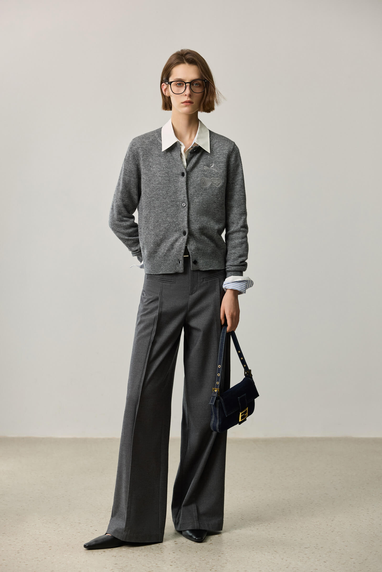 Cardigan preppy classique, confortable et facile à porter en transition saisonnière. Portez-le de manière décontractée, seul ou superposé avec un t-shirt/chemise, en mettant en valeur le col superposé. La broderie artistique de cerises sur la poitrine ajoute une touche vivante, rompant avec la monotonie du début de l'automne. La brise automnale insouciante est cachée dans la texture délicate, libérant un rythme tranquille.