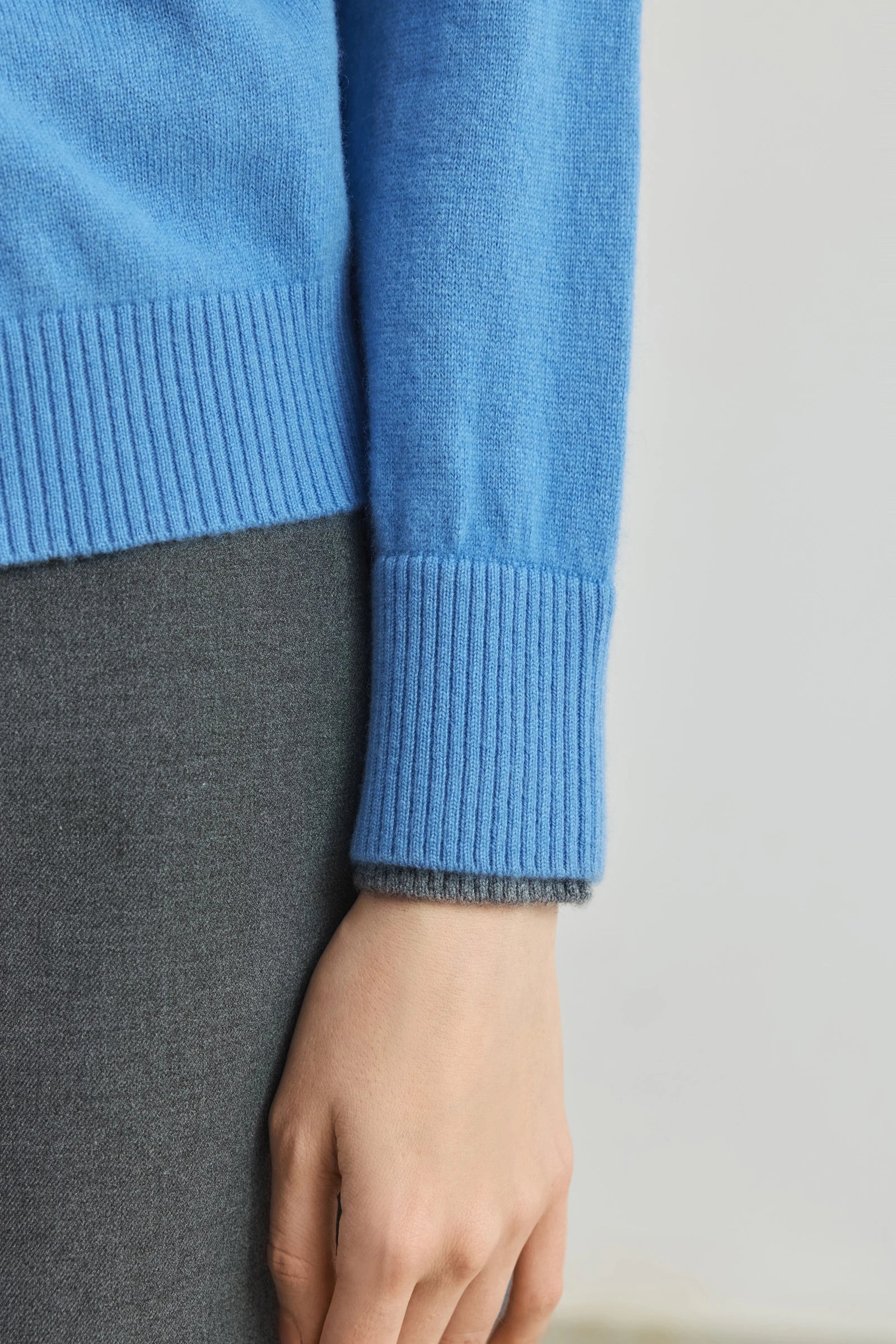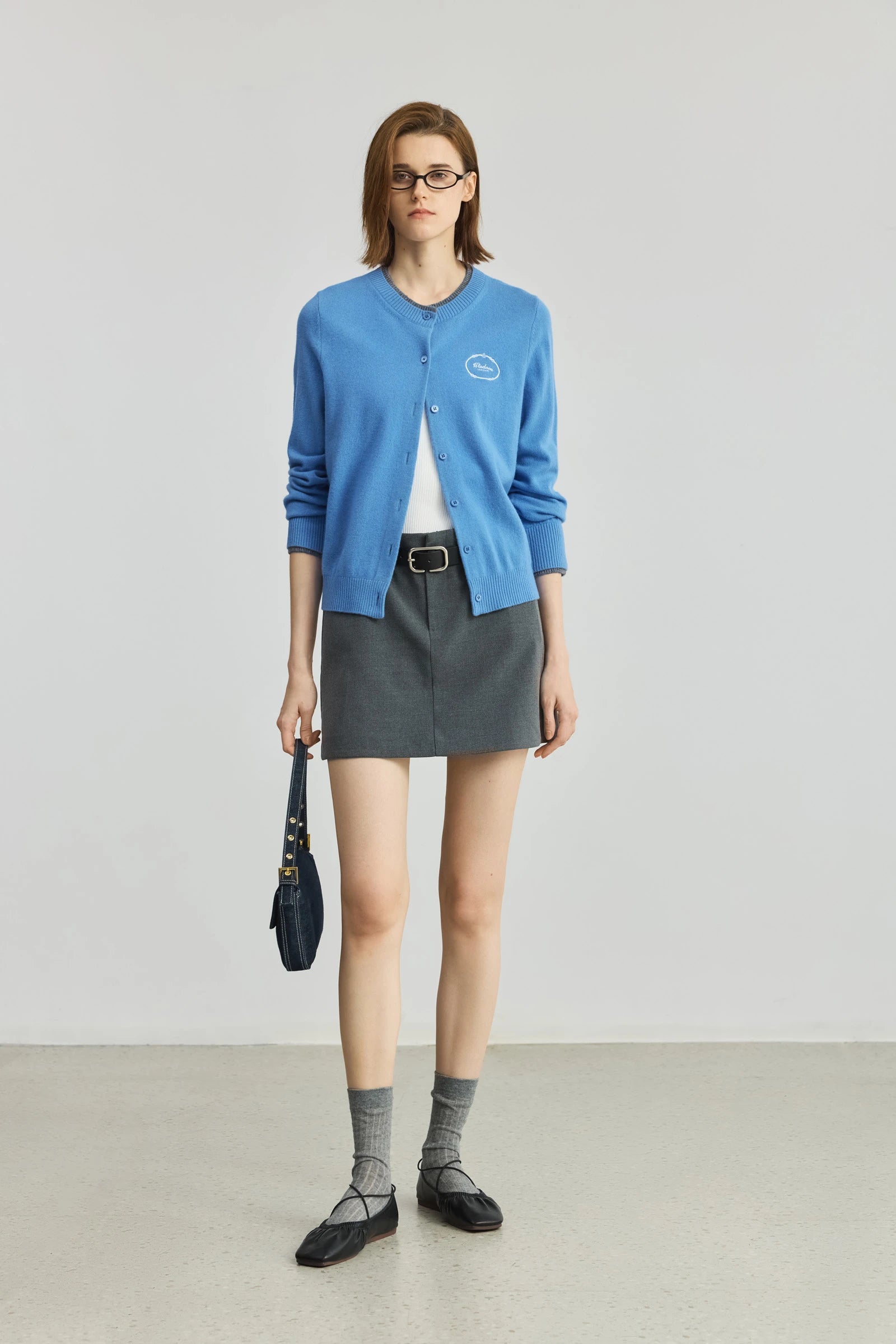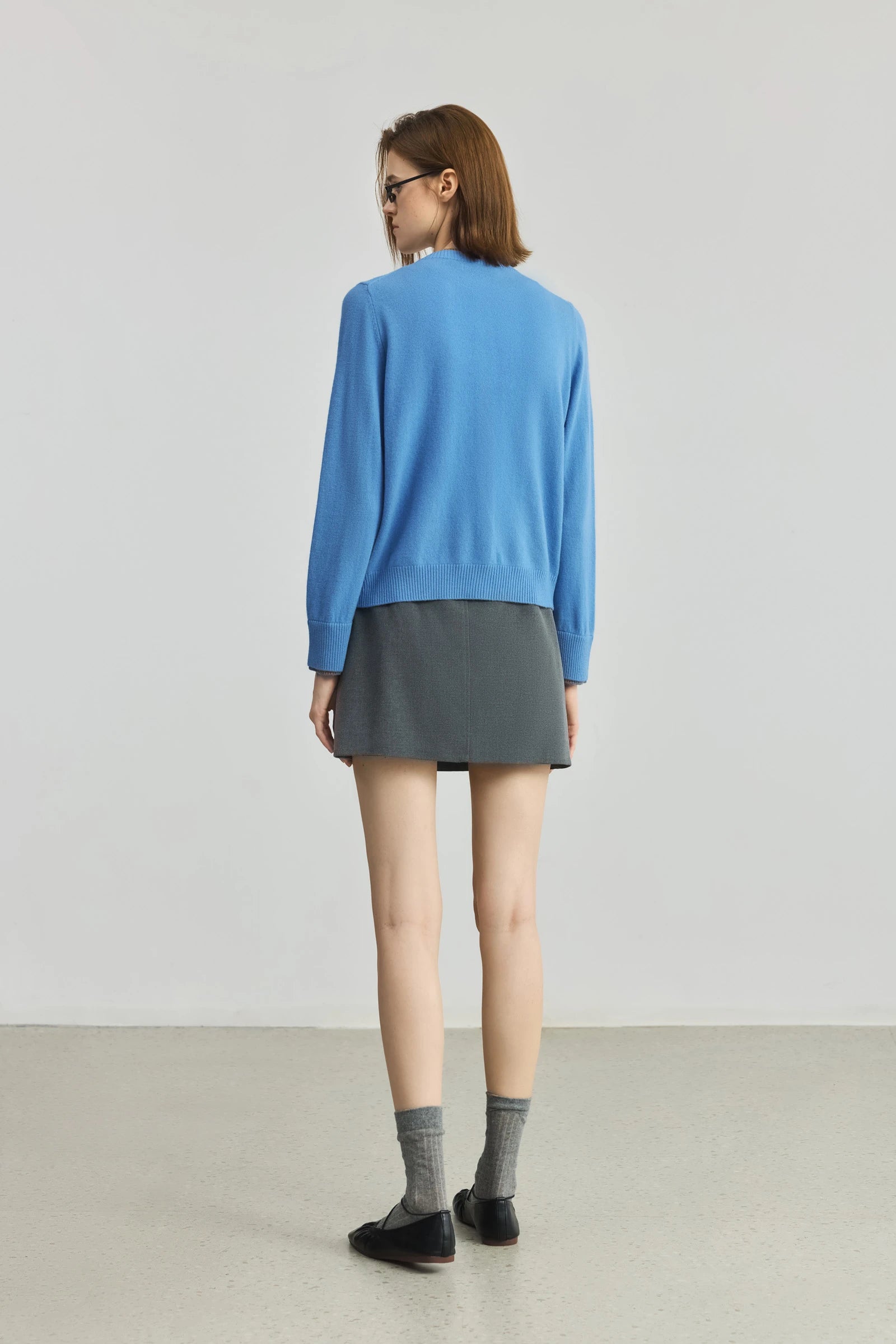 Contrast color design, preppy embroidery, cropped crew neck, Merino wool, preppy style