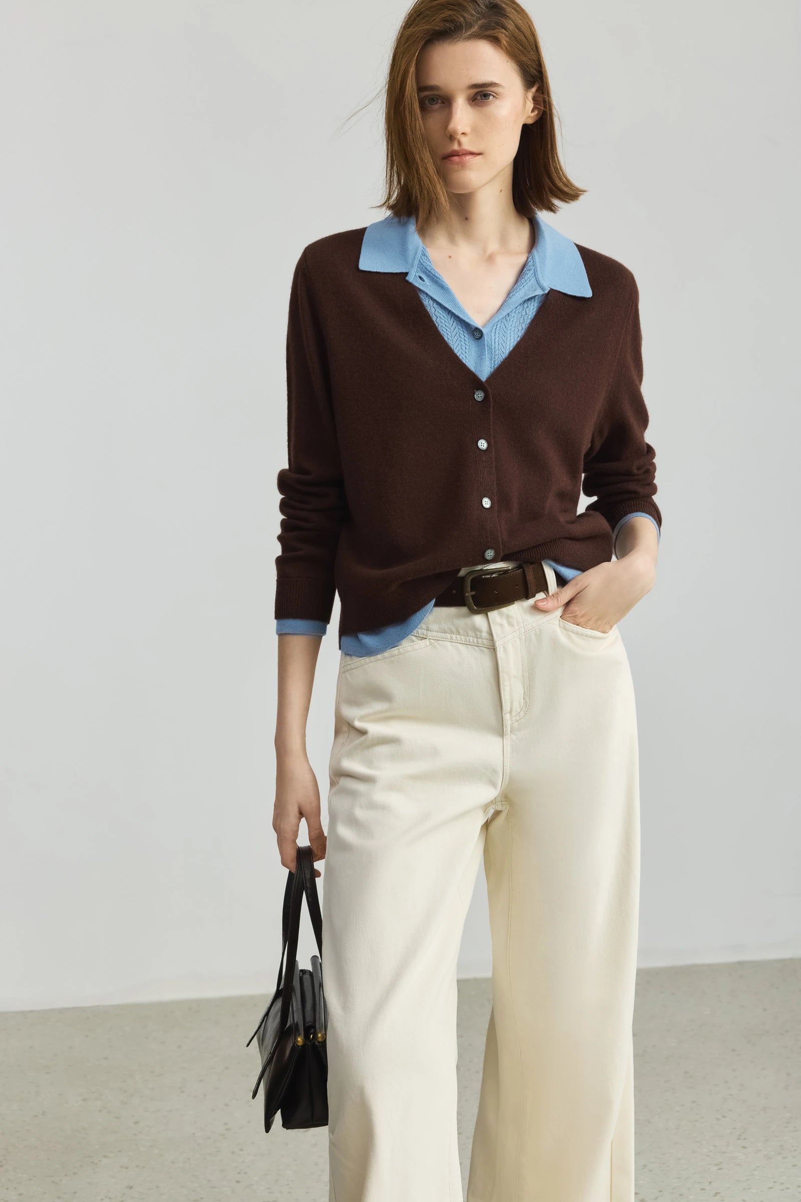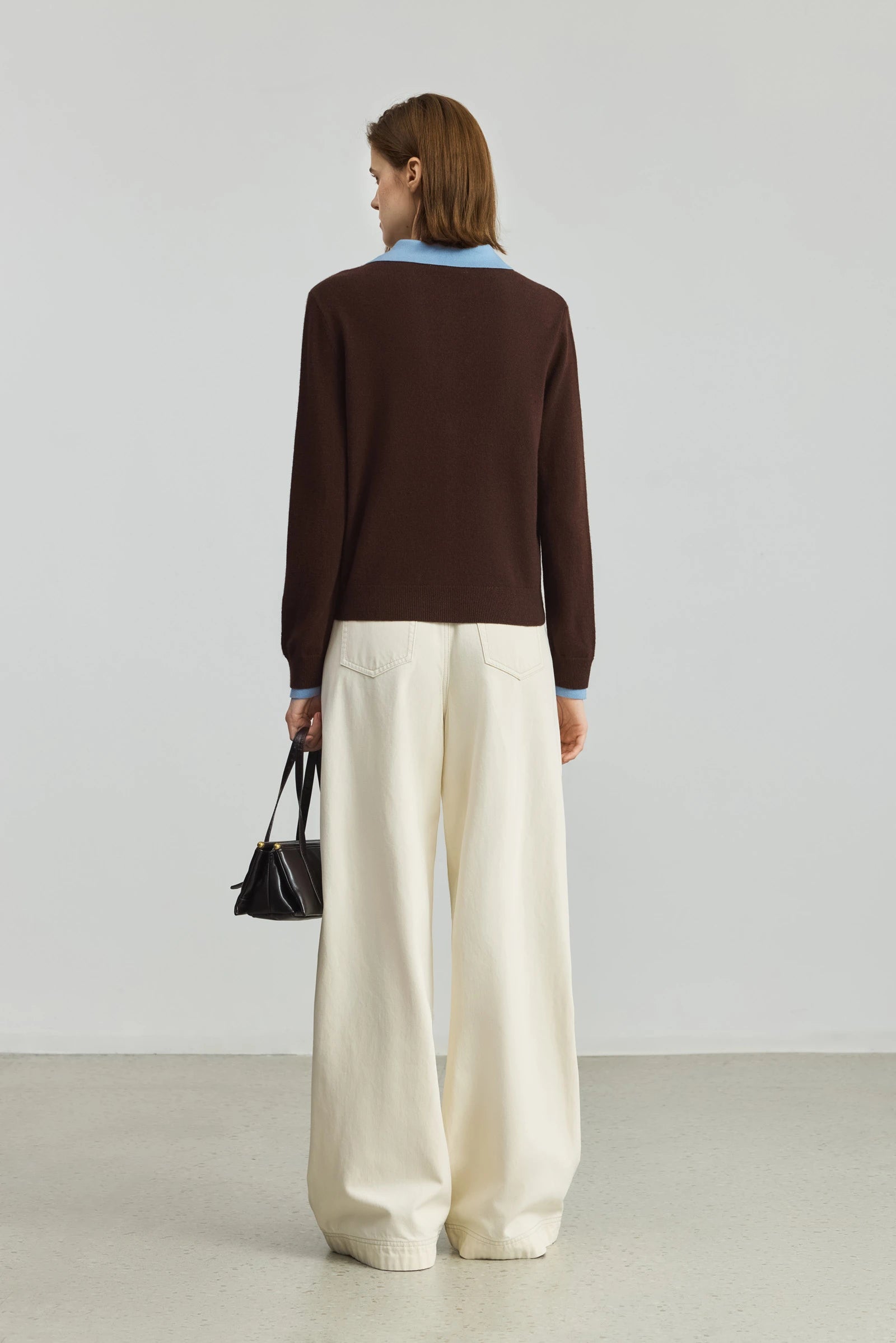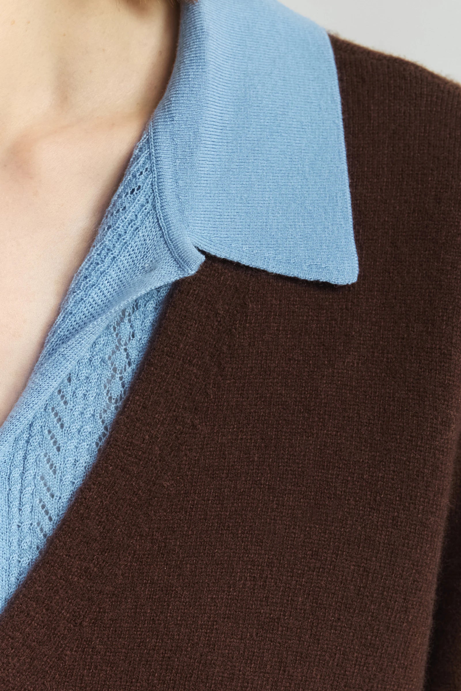 Fake two-piece design, polo collar, short version, merino wool, intellectual college style