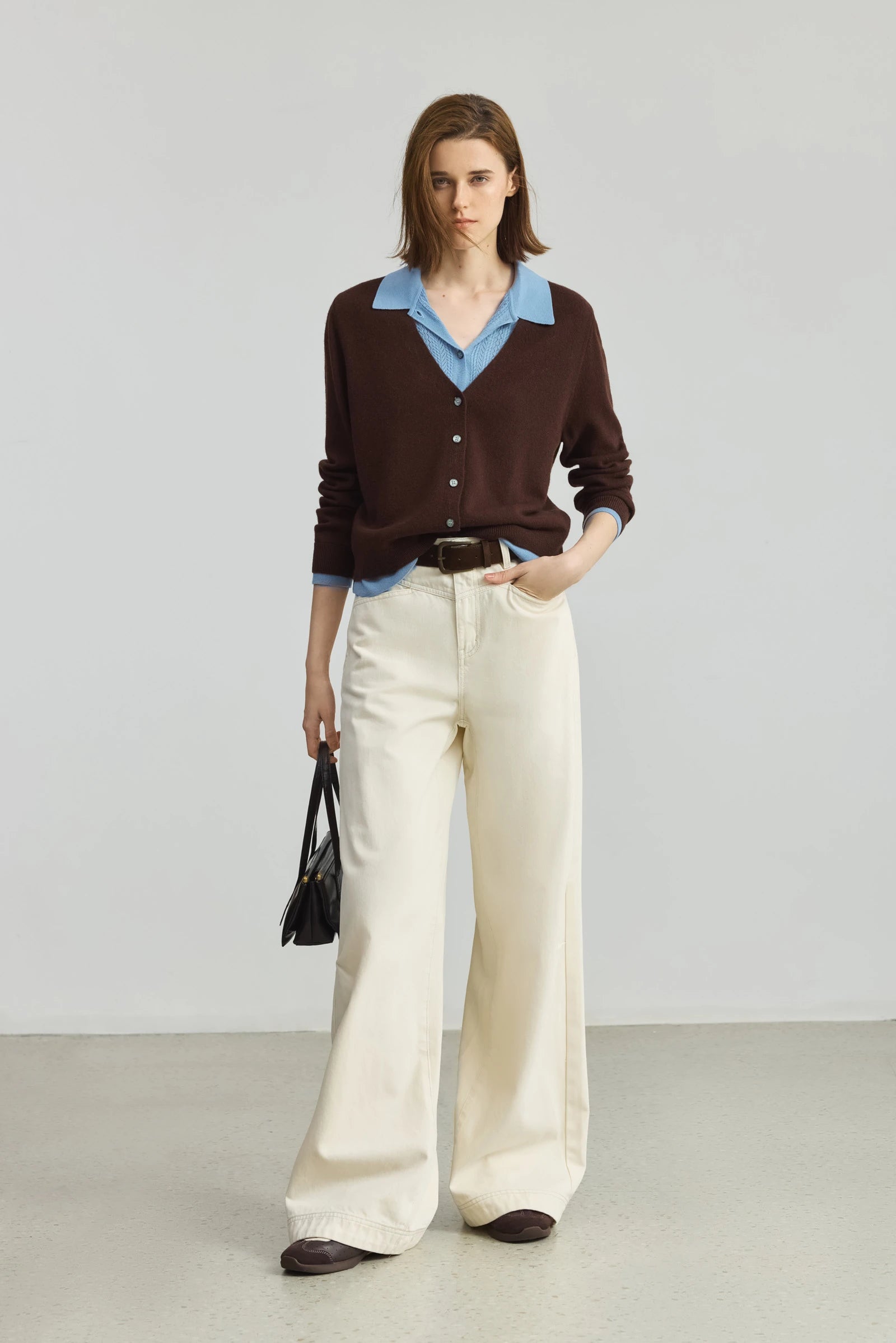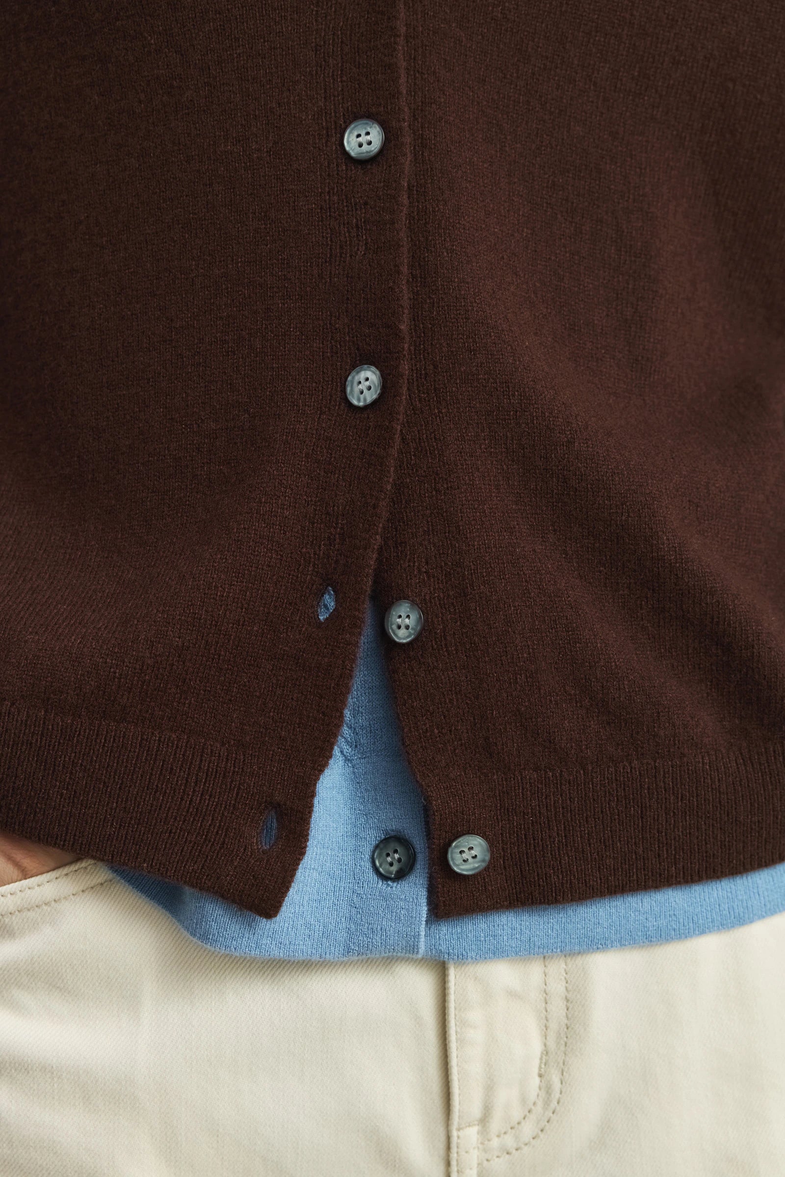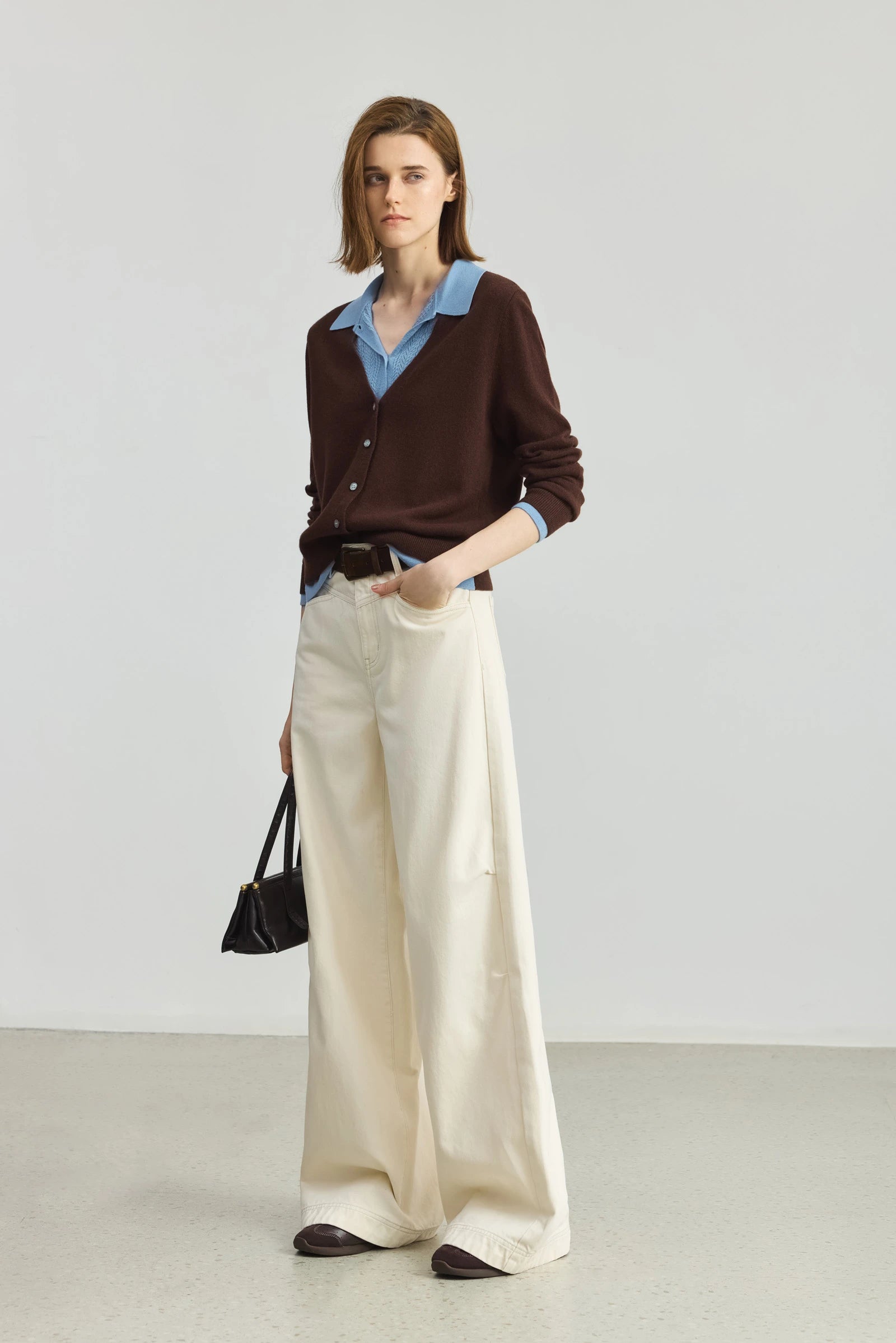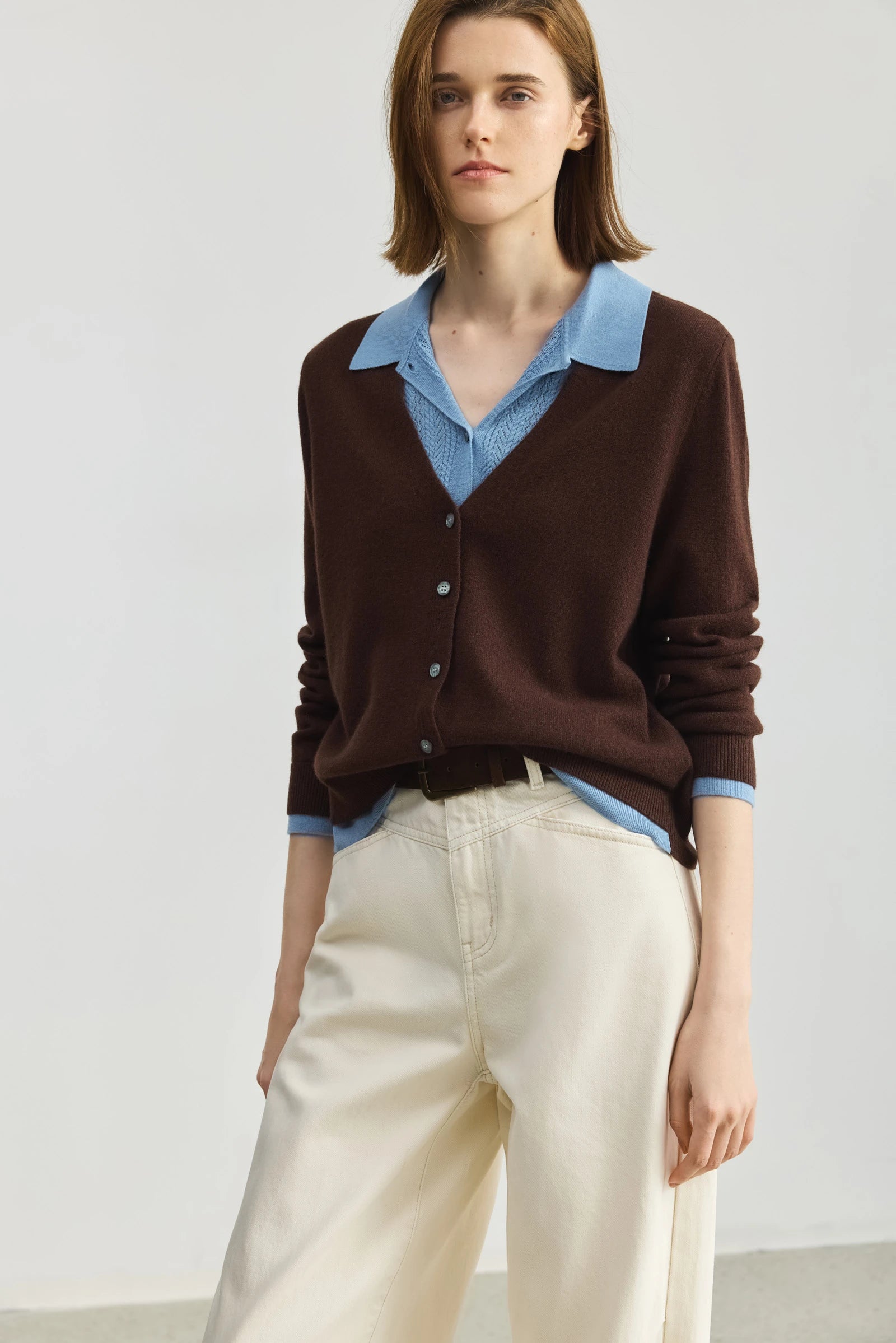 Fake two-piece design, polo collar, short version, merino wool, intellectual college style
